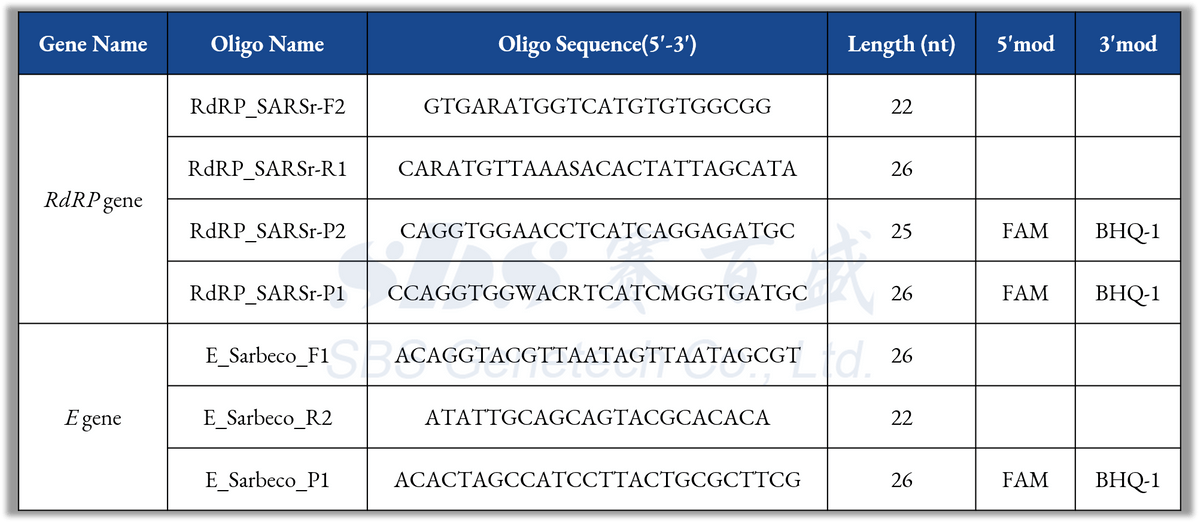 We provide the WHO recommended SARS-CoV-2 RT-qPCR Primers & Probes. Please contact us to get the quotation.